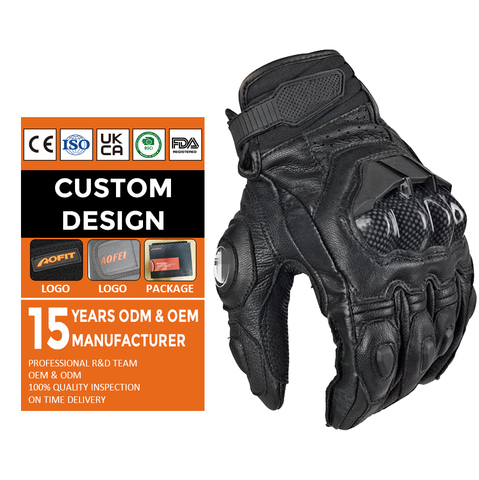 ถุงมือขี่มอเตอร์ไซค์หนังสำหรับผู้ชาย ป้องกันด้วยคาร์บอนไฟเบอร์ ถุงมือแข่งรถบนถนน ป้องกันลม ถุงมือขี่มอเตอร์ไซค์